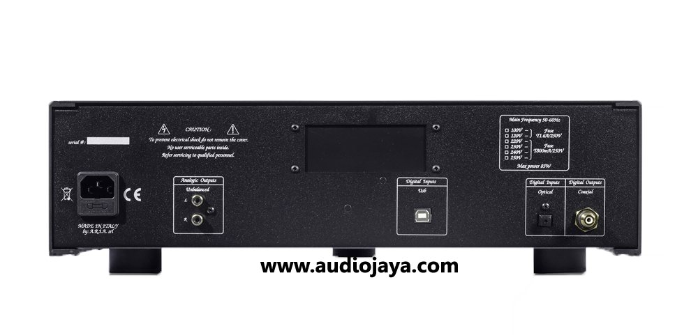 Aesthetically the CDUno, like the CDDue, differs from existing Unico products with its new three- fold faceplate, white LEDs and white display. This same aesthetic will pass over to the new Unico 90 and Unico 150 amplifiers, which are designed to be perfect matches for the CDUno and CDDue.Digital Inputs1 x USBStandard: USB 2.0 Audio Classfrequencies: 44.1, 48, 88.2, 96, 176.4, 192, 352.8, 384, DSD64, DSD128, DSD256 ReadyResolution: 16 to 32 bits1x Toslink™:Sampling frequencies: 44.1, 48, 88.2, 96 (176.4 and DSD64 DoP with high efficiency transmitters)Resolution: 16 to 24 bits1 x Bluetooth™ ReceiverStandard: BT 3.0Profiles: A2DP, SSP (HID supported with Android smartphones through SPP)Sampling frequencies: 44.1kHz, 48kHzResolution: 16 bitsDigital Output1x S/PDIFOutput voltage: 0.5Vpp on 75 OhmsTransport8829CD-KHM DVD-Loader , Only audio CDDisplay128 X 64 White OLED graphic displayDigital to Audio stageDAC: ESS Sabre ES9018K2M with jitter eliminatorSNR: 125dB (0dBFS, 1kHz, 192kHz, “A” weighted)THD+N: 0.0003% (0dBFS, 1kHZ, 20Hz-20kHZ)Timing: low phase noise, high precision crystaloscillatorsCD/Bluray Player, Unison Research